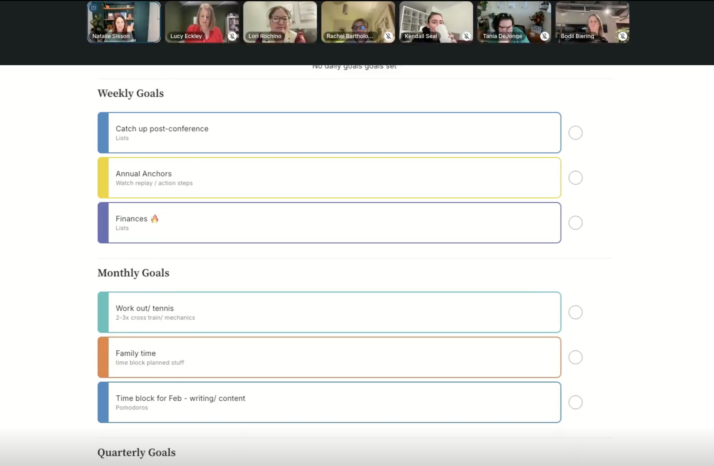 Every month, we cycle through live sessions designed to keep you planning, executing, getting coached, and staying accountable.