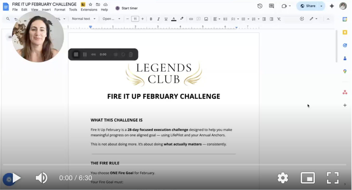 Set your Top 3 priorities in LifePilot for the week and get feedback and accountability to hold you to your big goals. Share wins and challenges, get support from your fellow Legends—inspiration, ideas, and celebration. This 30-minute call is what keeps you moving forward consistently.